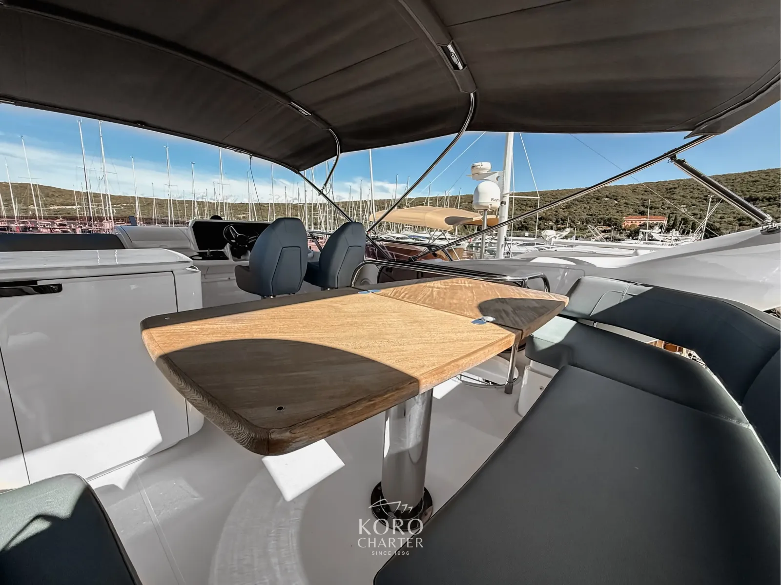 Joystick, bow thruster, autopilot, aft docking camera, generator, air conditioning, dishwasher, grill on the flybridge, microwave oven, ice machine, el. gangway, chain counter, extension teak hydraulic bathing platform, free WiFi flat mobile internet on board…