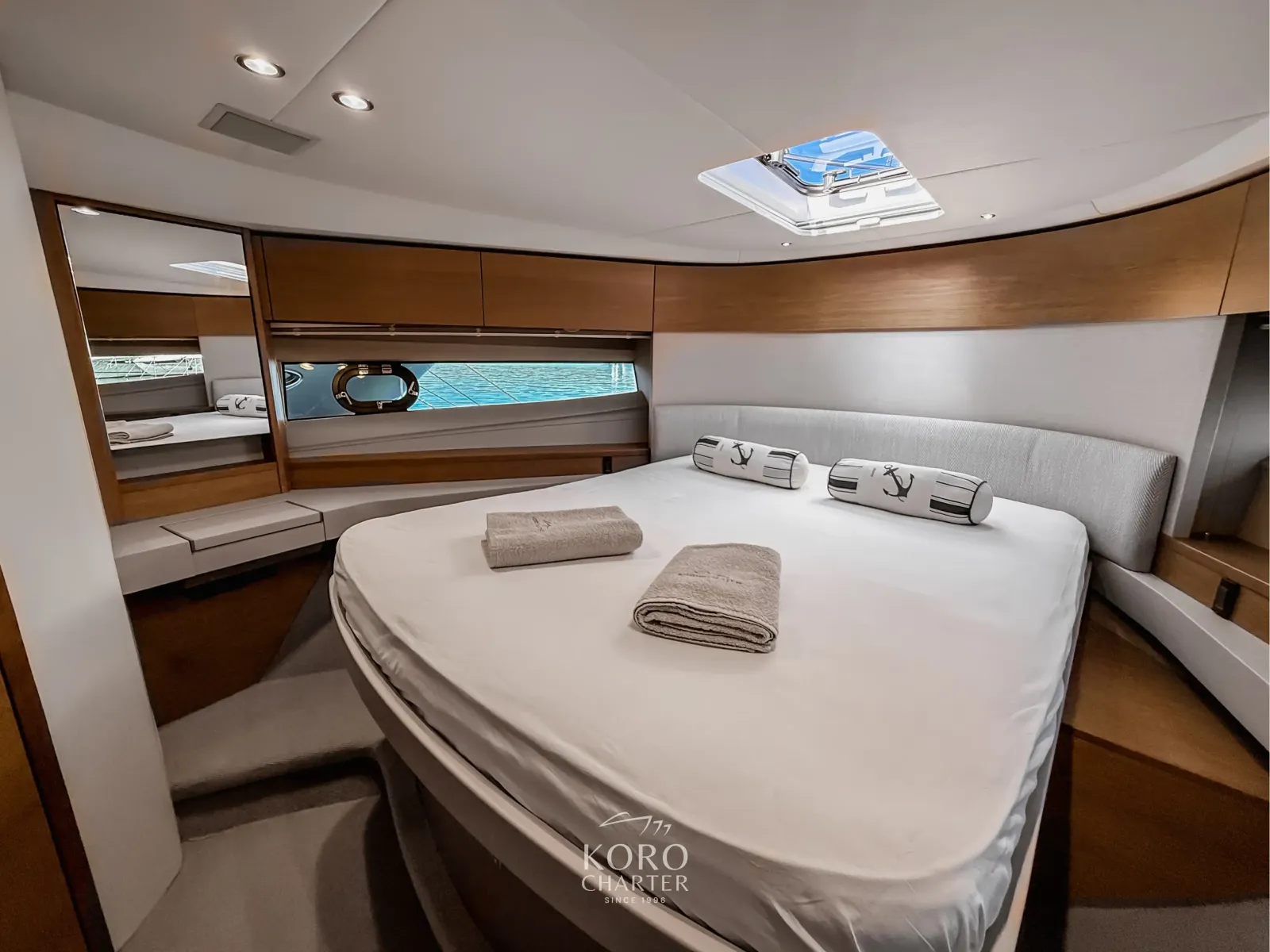 Princess F50 savršen je izbor za goste koji žele uživati u prostranosti flybridgea i komforu modernog jahtinga. S velikim kokpitom, udobnim sunčalištima i elegantnim interijerom raspoređenim u tri kabine, ovaj brod nudi idealan balans između privatnosti i druženja na moru. Flybridge s dodatnim prostorom za sjedenje i sunčanje pruža nezaboravan pogled na Jadran, dok snažni motori osiguravaju udobnu i sigurnu plovidbu.