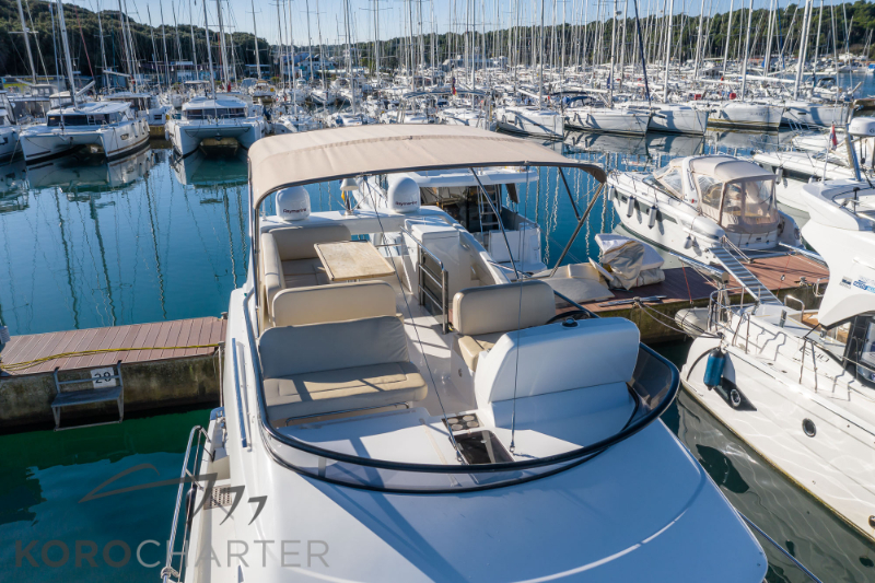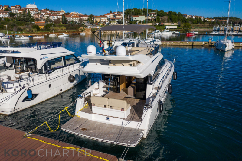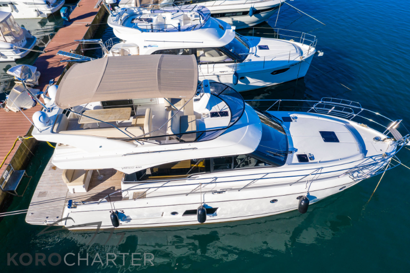 Bugstrahlruder, Generator, Klimaanlage, Grill auf dem Flybridge, SAT-TV, Kettenzähler, Unterwasserbeleuchtung, Erweiterung Teakholz hydraulische Badeplattform, kostenlose WiFi flat mobile Internet auf dem board…