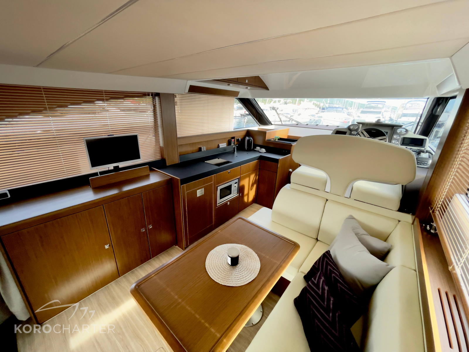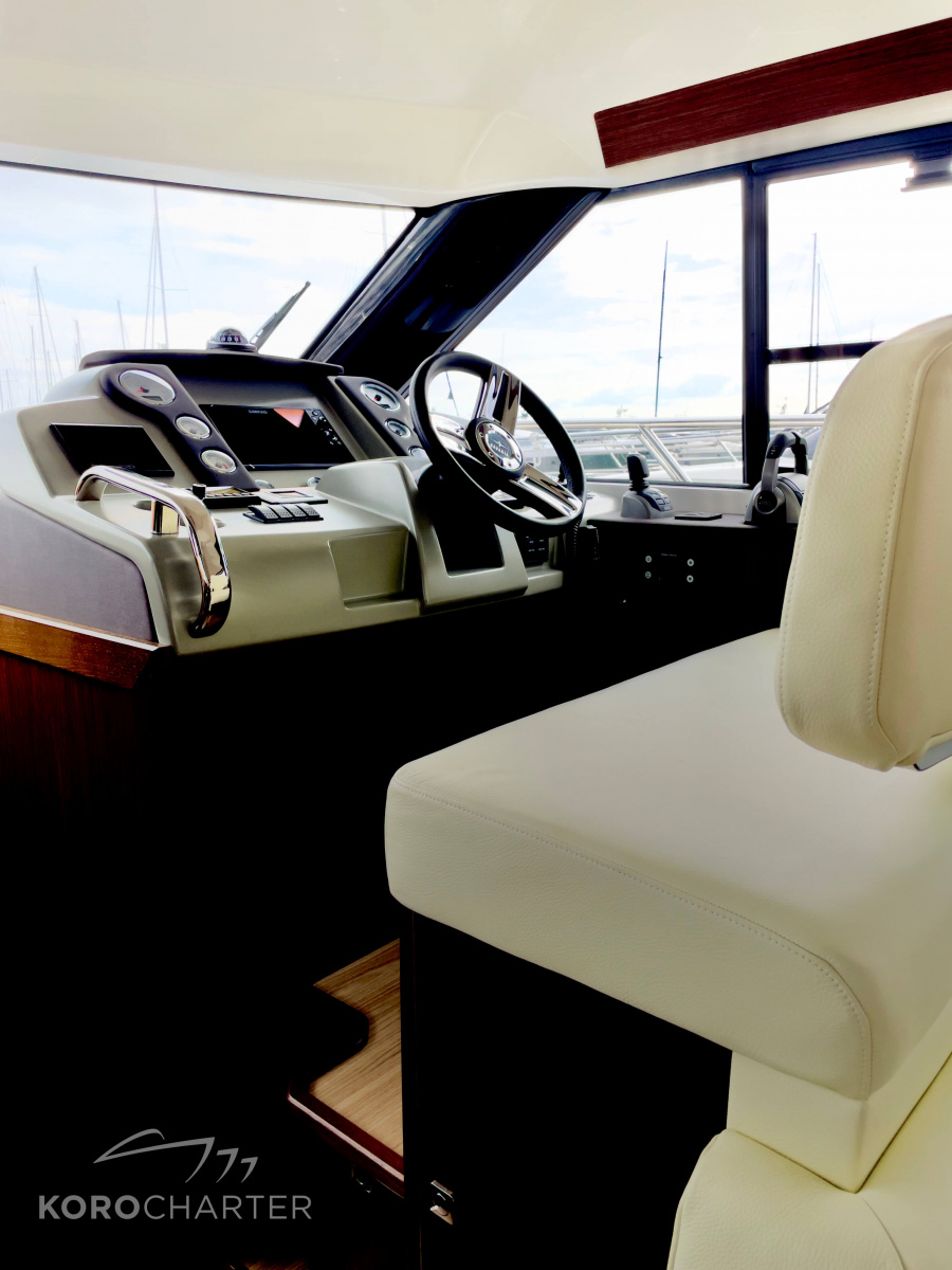 Das Erfolgsgeheimnis der VIRTESS 420 FLY IPS ist die Summe vieler cleverer Details, die zusammen ein Maximum an Komfort und Funktionalität ergeben. Vom ergonomischen Fahrstand hat man den perfekten Überblick über die gesamte Yacht, und scheint die Sonne, öffnet man das elektrische Coupé-Dach für das absolute Fahrvergnügen.